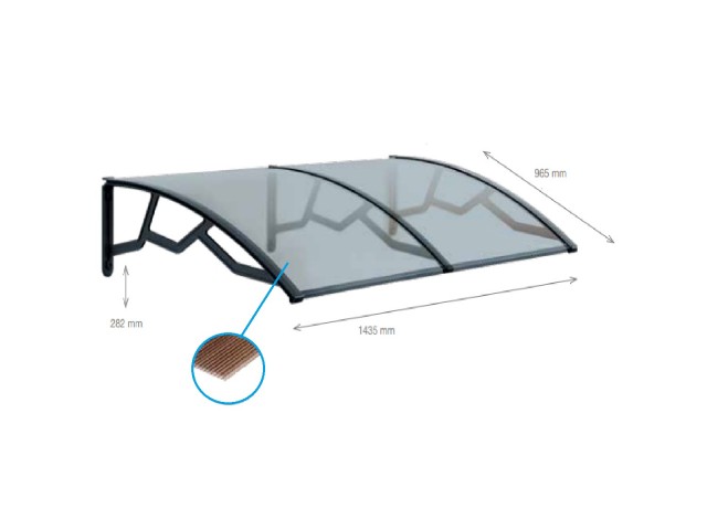 Stříška nad vchodové dveře, okna či jako přístřešek na terasu, balkón a nebo nad cestičku u budovy, rozměr 100x145cm, v kouřové barvě z komůrkového polykarbonátu.