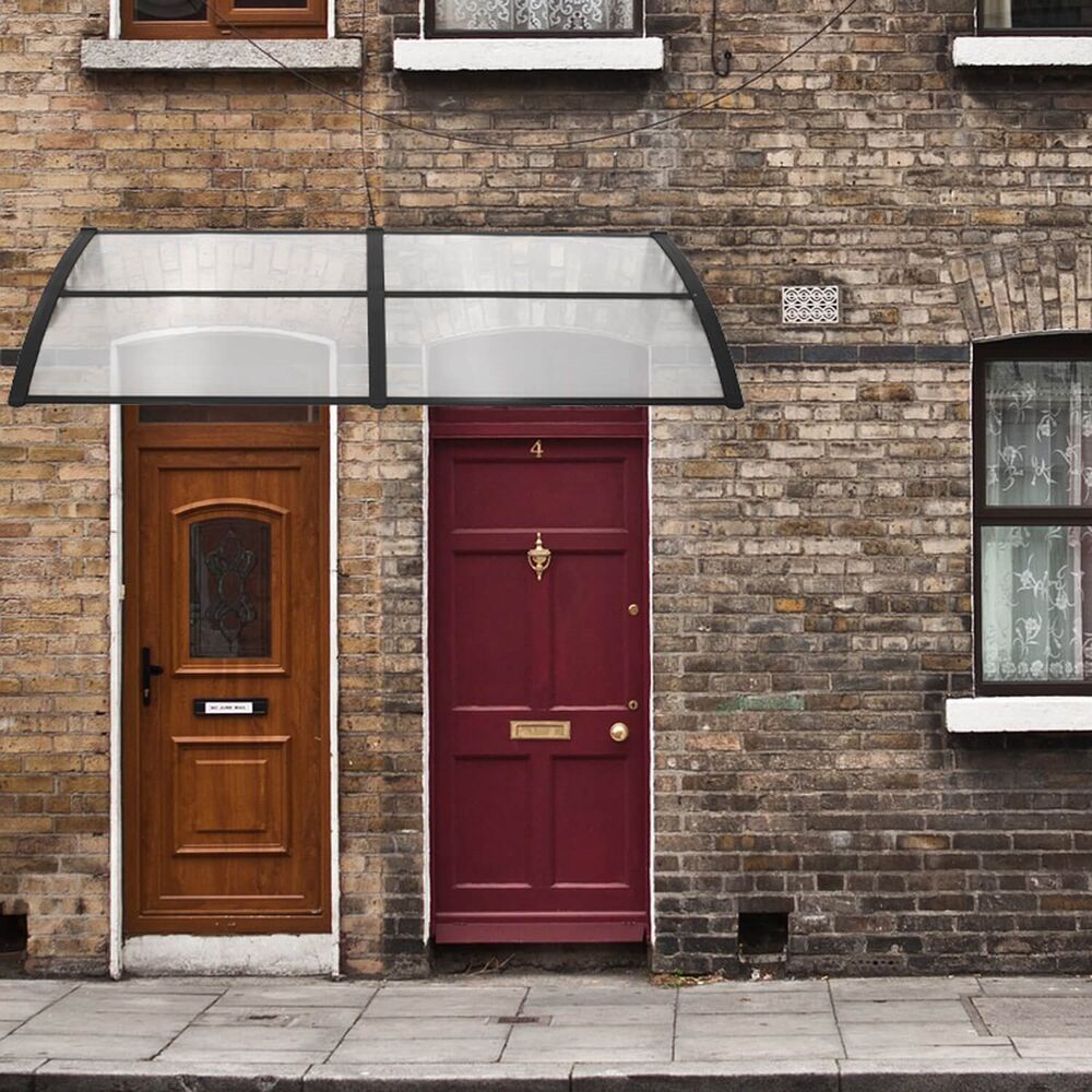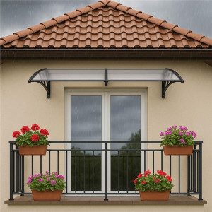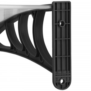 Stříška nad vchodové dveře je vyrobena z komůrkového polykarbonátu odolného vůči UV záření, který zaručuje dlouhou životnost a ochranu proti vyblednutí. Konstrukce je tvořena pevnými plastovými držáky a lištami, které zajistí stabilitu a bezpečné upevnění ke zdi. Díky své nízké hmotnosti je montáž snadná a rychlá, přičemž spojovací materiál je součástí balení.
