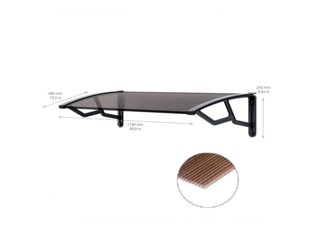 Stříška nad vchodové dveře, okna či jako přístřešek na terasu, balkón a nebo nad cestičku u budovy, rozměr 50x120cm, v kouřové barvě z komůrkového polykarbonátu.