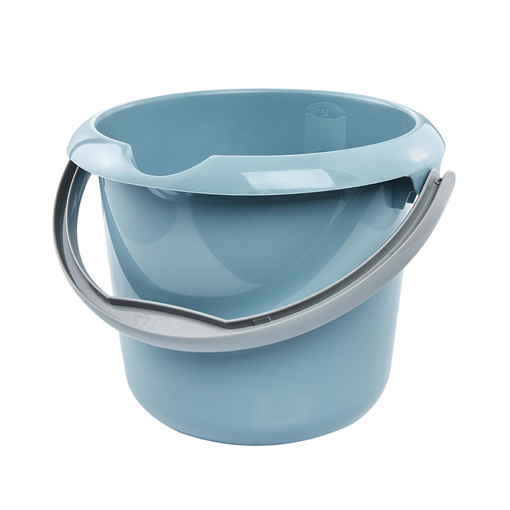 Vědro na vodu o objemu 5 l, k úklidu domácnosti s praktickou výlevkou a pevným držadlem, které dobře padne do ruky.