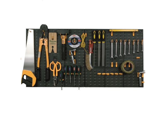 Pomoci této nástěnné sady budete mít všechno vaše nářadí pěkně po ruce a přehledně uspořádané. Díky tomu ušetříte spoustu času, který byste jinak věnovali neustálému hledání jednotlivých druhů nářadí. Stačí si ji tedy namontovat na stěnu ve vaši dílně nebo garáži a naplnit vašim nářadím. Navíc je sada vyrobena z polypropylenu, což je plně recyklovatelný materiál v souladu s legislativou REACH. Tedy neváhejte a pořiďte si ji zde na našem e-shopu.