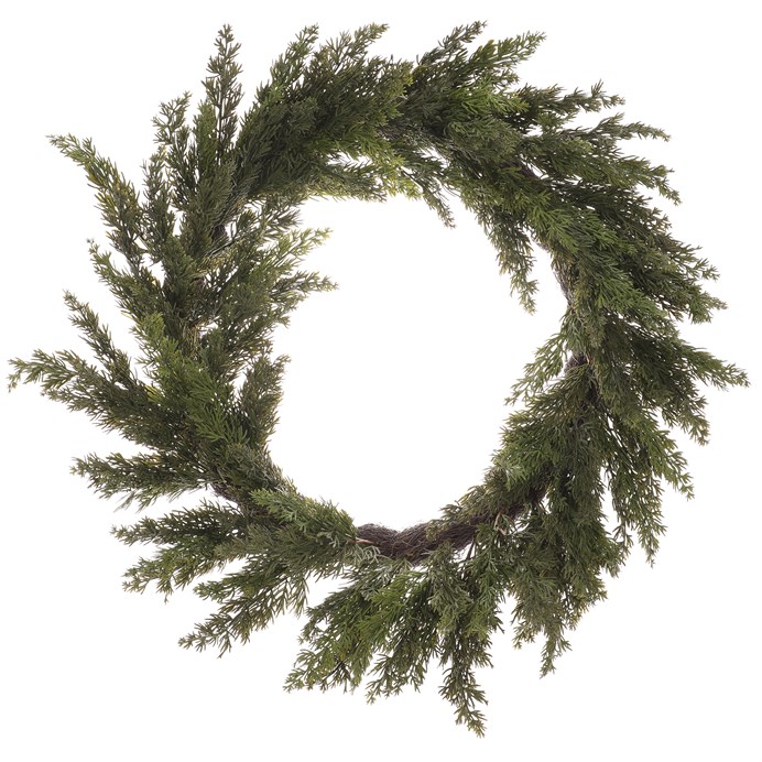 Dotaz na produkt Na splátky ještě dnesVelký umělý věnec o průměru 66 cm, tvořený realisticky zpracovaným zeleným jehličím túje. Působí bohatým a svěžím dojmem, neopadává a zůstane krásný po mnoho sezón. Ideální jako výrazná zimní dekorace nebo základ pro další zdobení dle vaší fantazie.