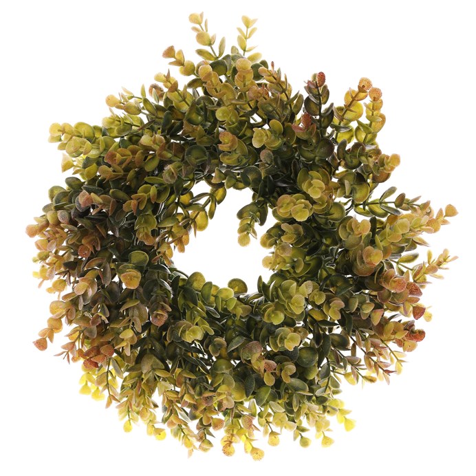 Dotaz na produktUmělý věnec o průměru 30 cm z eukalyptu v zelených až hnědých odstínech je elegantním doplňkem pro podzimní i celoroční výzdobu. Díky přirozenému vzhledu skvěle doplní interiér nebo vstupní dveře a vnese do prostoru jemný nádech přírody.