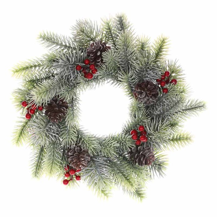 Dotaz na produktVěnec z umělého jehličí, doplněný červenými bobulemi a pravými šiškami. Jeho průměr činí 34 cm, a stane se krásnou vánoční dekorací, která vydrží ve stejné kráse prakticky na věky.