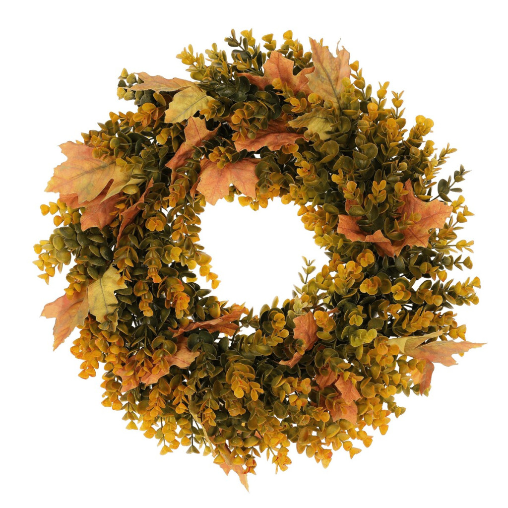 Dotaz na produktOzdobte své prostory s naším umělým věncem o průměru 40 cm, který spojuje krásu eukalyptu a javorových listů v příjemných odstínech oranžové a zelené. Tato unikátní dekorace není jen vizuálně působivá, ale je také všestranná. Umístěte ji na dveře, stůl nebo stěnu pro okamžitý nádech elegance. Navíc je vhodná i pro pietní místa, kde může sloužit jako vyjádření úcty a lásky k těm, kteří už nejsou mezi námi. Tento umělý věnec je nejen krásnou dekorací, ale i symbolickým prvkem, který přináší klid, krásu a vzpomínky do každého prostoru.