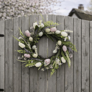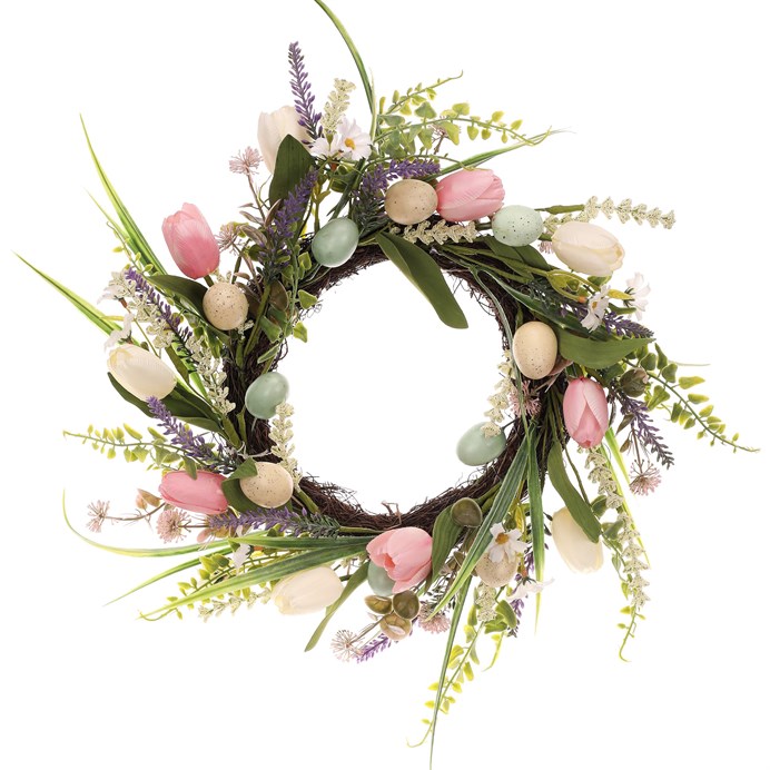 Dotaz na produktUmělý věnec o průměru 45 cm kombinuje přírodní proutí se zelenými listy, barevnými květy a dekorativními vajíčky v pastelových odstínech. Věnec vyniká detailním zpracováním, které věrně napodobuje jarní atmosféru a přináší svěží vizuální efekt do interiéru. Je vhodný k zavěšení na dveře nebo jako dekorace na stůl či komodu, kde podtrhne sezónní výzdobu. Barevné prvky jsou rozmístěny rovnoměrně, což zajišťuje harmonický vzhled z každého úhlu. Díky použitým materiálům se snadno udržuje a zachovává svůj vzhled po dlouhou dobu.