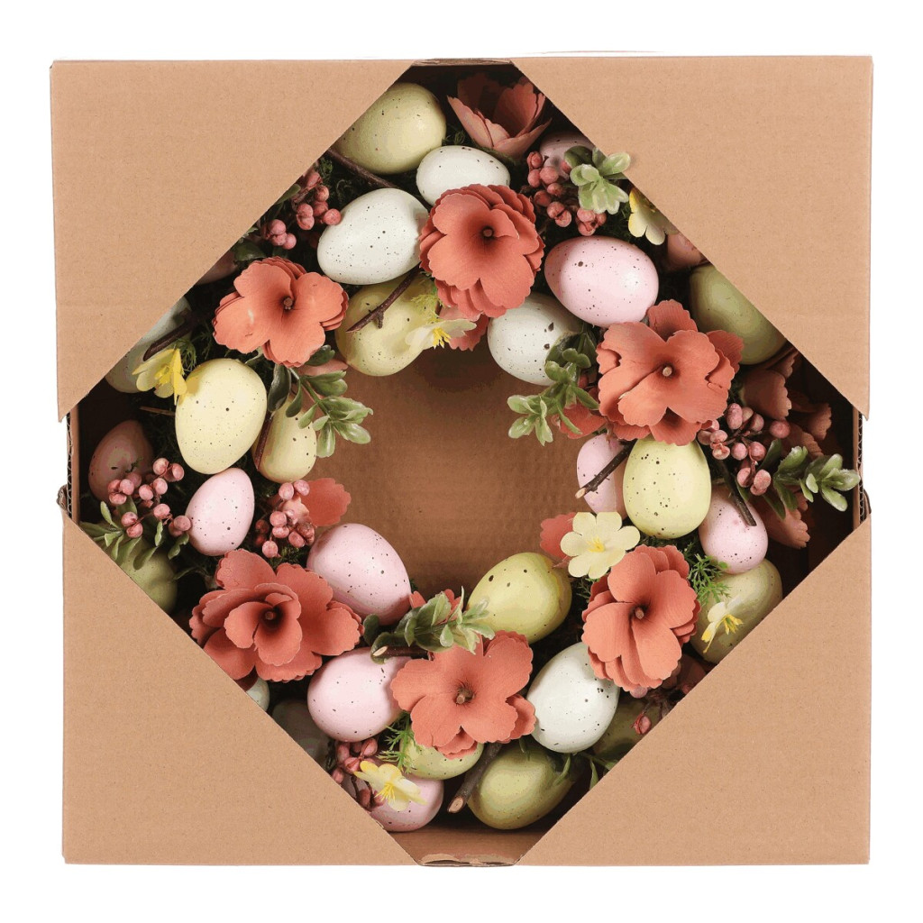 Dotaz na produktPestrobarevný velikonoční věnec o průměru 33 cm je vytvořen na proutěném základu a zdobený umělými květinami a vajíčky v živých odstínech. Skvělá dekorace, která vdechne vašemu domovu jarní radost a barvy, a zároveň zůstane díky své trvanlivosti krásná i pro mnoho dalších let.