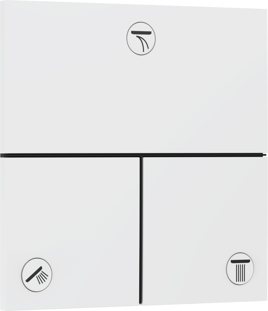 Zapůsobí svým designem i snadným používáním: až tři spotřebiče se jednoduše zapínají a vypínají použitím velkých tlačítek (Select). Fungují spolehlivě i s mokrýma nebo namydlenýma rukama a lze je ovládat i se zavřenýma očima (například při mytí vlasů). K ovládání množství a teploty vody je ventil kombinován s podomítkovým termostatem hansgrohe ShowerSelect Comfort ve stejném designu. Chcete-li používat více než tři spotřebiče, je ideální termostatická baterie ShowerSelect Comfort pro jeden spotřebič a další výtok Celkem jsou tedy možné až čtyři funkce.