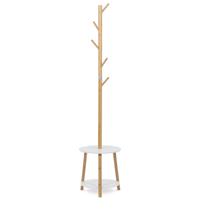 Dotaz na produktElegantní stojanový věšák značky Autronic kombinuje skandinávský styl s praktickým designem. Vyroben z kvalitního bambusu v přírodní barvě, nabízí stabilní konstrukci a moderní vzhled. Tento věšák disponuje dvěma odkládacími policemi v bílé barvě, které poskytují dodatečný úložný prostor pro vaše boty, tašky nebo dekorace.