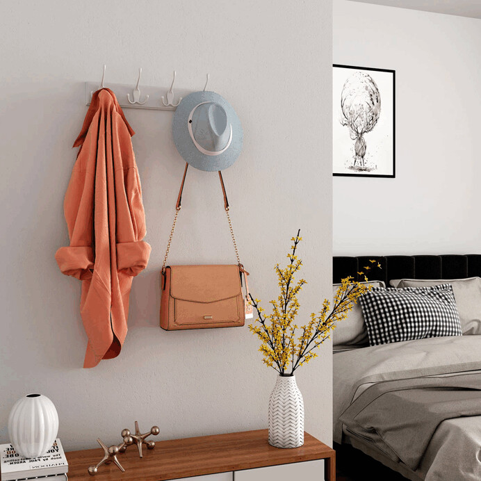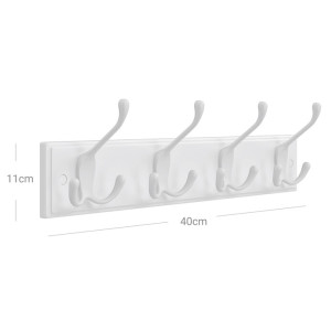 Dotaz na produktNástěnný věšák v bílém provedení nabízí čtyři pevné háčky pro praktické zavěšení oděvů či doplňků. Vyroben je z kvalitního dřeva s hladkým povrchem a nadčasovým designem, který snadno zapadne do různých interiérů. Kompaktní rozměry umožňují jeho umístění v předsíních, chodbách nebo ložnicích. Věšák je vybaven otvory pro snadné a pevné připevnění na stěnu. Jeho jednoduchý a čistý vzhled podporuje funkčnost a zároveň estetiku prostoru.