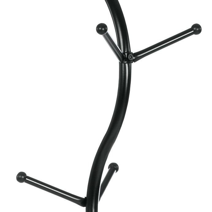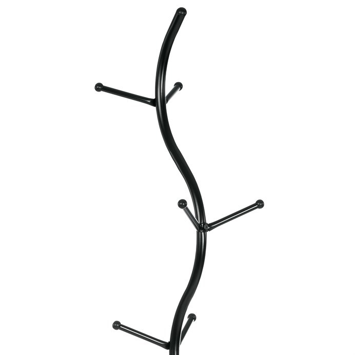Dotaz na produktStojanový věšák s výškou 180 cm je vyroben z pevného kovu s matnou černou povrchovou úpravou, která zajišťuje odolnost proti poškození a snadnou údržbu. Design věšáku je tvořen elegantně prohnutou hlavní tyčí s šesti rozloženými háčky zakončenými kulatými koncovkami, které zabraňují sklouznutí oděvů. Stabilní kulatá základna poskytuje dostatečnou oporu a zaručuje bezpečné postavení i při plném zatížení do 10 kg. Věšák je vhodný pro umístění v předsíních, kancelářích či čekárnách, kde kombinuje funkčnost s minimalistickým moderním vzhledem.
