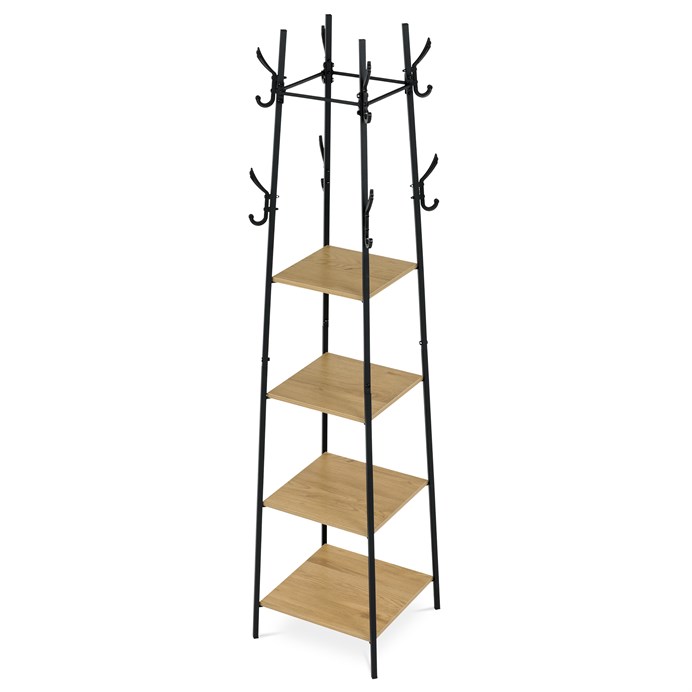 Dotaz na produkt Na splátky ještě dnesVěšák značky Autronic s praktickými policemi a industriálním designem je ideálním řešením pro organizaci a dekoraci vaší předsíně nebo ložnice. Kombinace dekoru divokého dubu a černého kovového rámu dodává interiéru moderní charakter. Čtyři prostorné police nabízí dostatek místa pro odkládání doplňků, klobouků nebo bot, zatímco háčky umožňují zavěšení kabátů a tašek. Tento multifunkční kousek spojuje styl a praktičnost, což ocení každý, kdo hledá designový a účelný doplněk pro svůj domov.