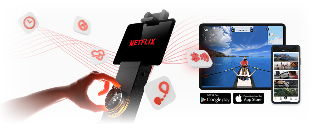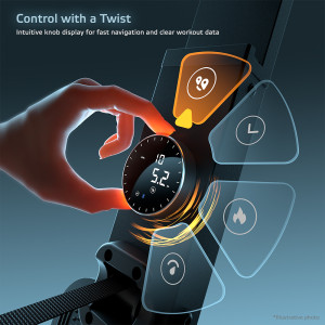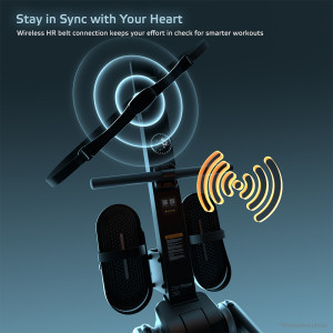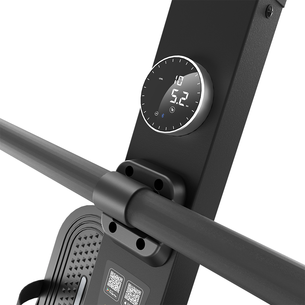 Na intuitivním otočném ovládání s displejem přehledně sledujete všechny důležité údaje – tempo, počet přítahů, odpor, čas, vzdálenost, spálené kalorie i čas na 500 m. Trenažér podporuje připojení Bluetooth i analogových hrudních pásů, takže můžete trénovat podle tepové frekvence a sledovat svůj výkon v reálném čase. Pomocí držáku na tablet si snadno zpříjemníte trénink oblíbeným filmem nebo aplikací.