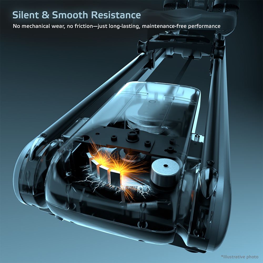 inSPORTline ZenRow 30 využívá magnetický brzdný systém s převodovým poměrem 1:4 a 2 kg zátěžové kolo, které zajišťují hladký, přirozený a tichý chod. Díky elektronickému ovládání zátěže se odpor automaticky přizpůsobuje zvolenému tréninkovému programu (v aplikaci Kinomap), což zvyšuje efektivitu i komfort při veslování.