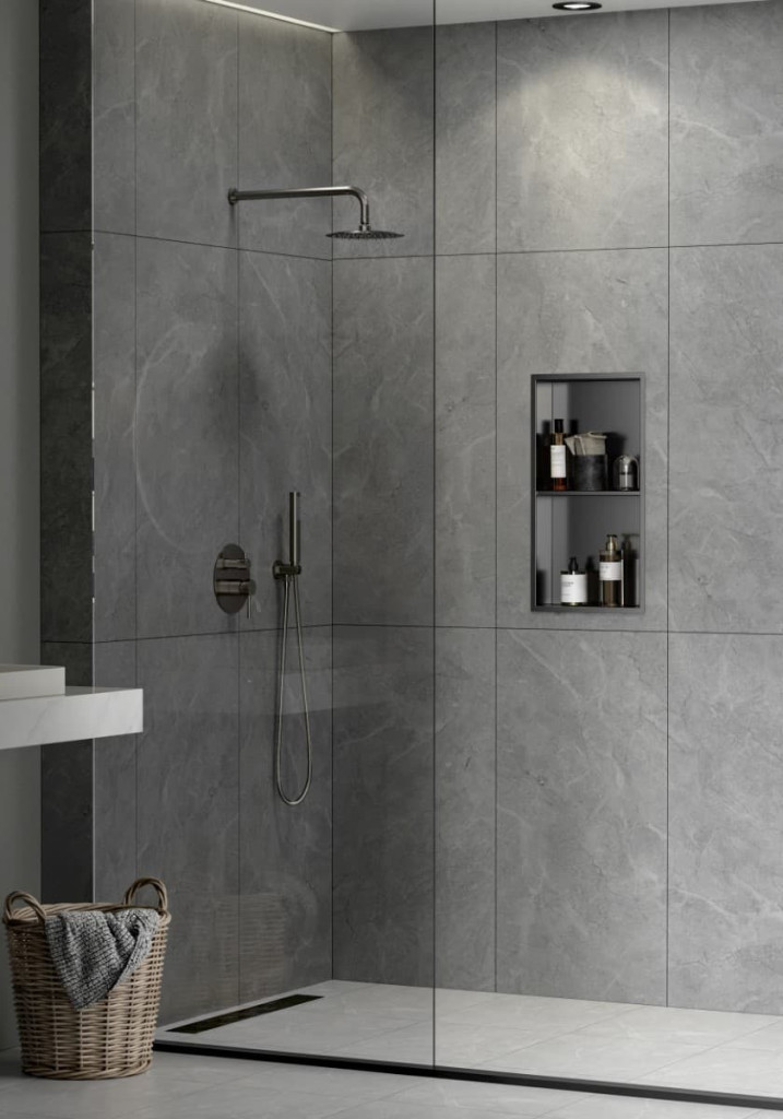 uprostřed navíc druhá polička pro zvětšení odkládací plochymateriál stěnového výklenku: nerezová ocel 304barva výklenku: gun metalsnadná údržbavelikost vč. rámu: 630x330x100 mmvelikost otvoru k...