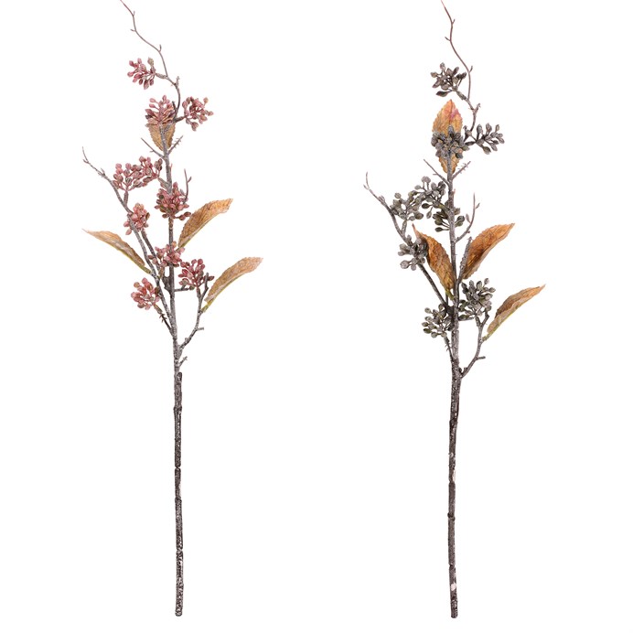 Dotaz na produktUmělá větev s bobulemi ve dvou variantách, a to s růžovými nebo modrými plody, je trvalou přízdobou, která nikdy neuvadne ani neopadá. Skvěle se svým stylem hodí pro podzimní výzdobu a díky své odolnosti ji můžete používat opakovaně nebo jako součást trvalých květinových aranží.