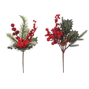 Dotaz na produktUmělá přízdoba v podobě větve s červenými bobulemi, jehličnanem a zelenými lístky, bude skvělou volbou pro podzimní a vánoční aranžování. Krásné barvy a přirozený rostlinný vzhled dodá prostoru krásnou přírodní atmosféru.