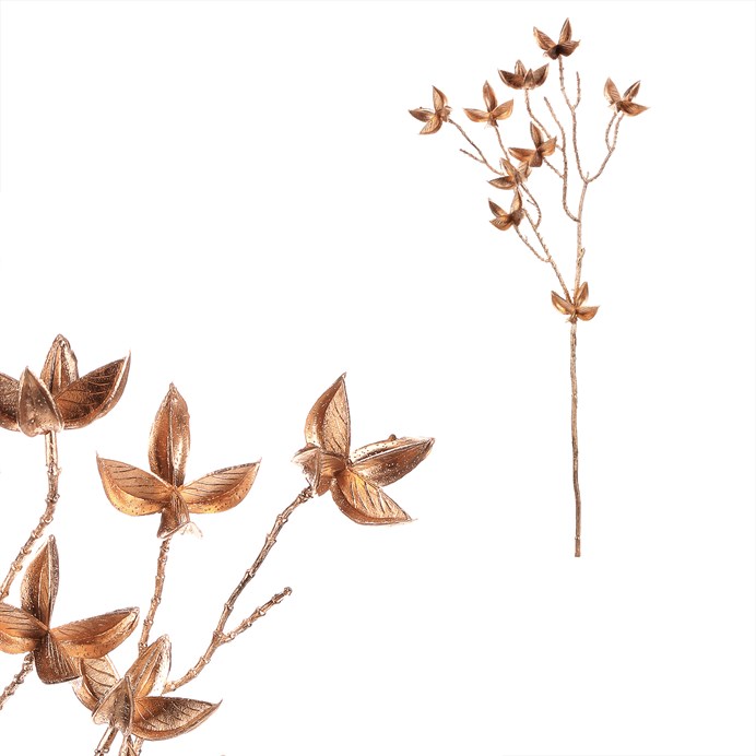 Dotaz na produktUmělá větev se špičatými lístky ve zlatém barevném provedení vnese do vaší výzdoby elegantní a slavnostní atmosféru. Exotický vzhled této rostliny dává vánočním aranžím nevšední šmrnc, a přitom dokonale ladí s dalšími svátečními dekoracemi. Skvělá volba pro ozdobení věnců, svícnů či stolních aranží.
