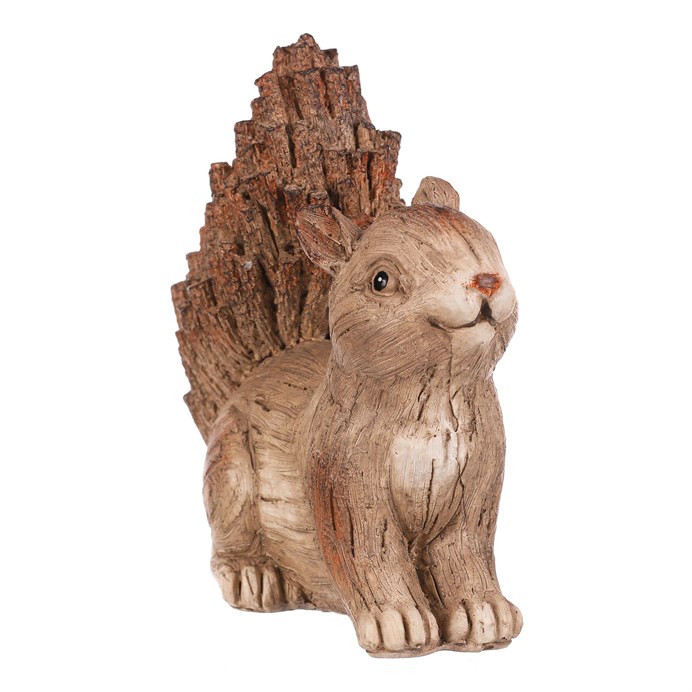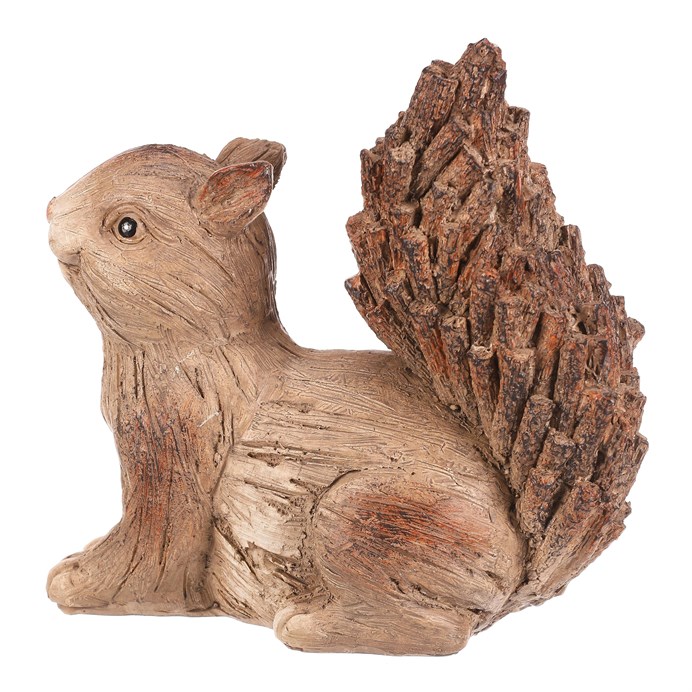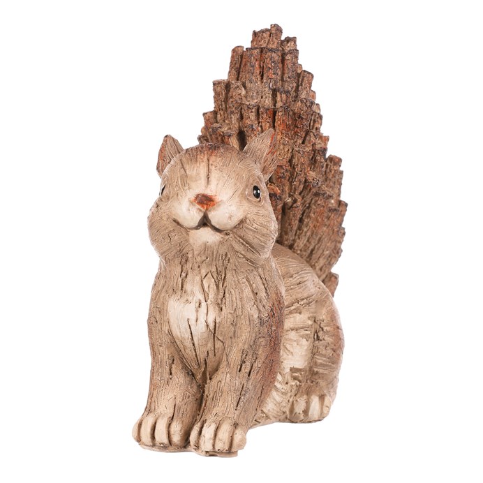 Dotaz na produktZahradní figurka v podobě veverky krásně zapadne do vnějšího přírodního prostředí, čímž vytvoříte hravě krásné lesní zátiší. Veverka v béžovo-hnědých odstínech je vyrobena z polyresinu, ale vypadá jako by byla celá ze dřeva. Její ocásek je tvořen jakoby drobnými nasekanými částmi větviček a zbytek těla má charakteristickou dřevěnou texturu.