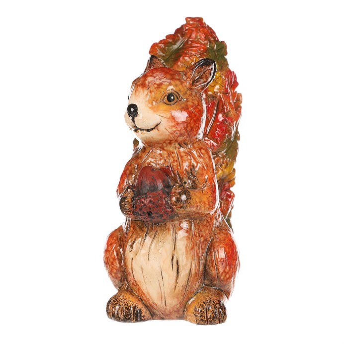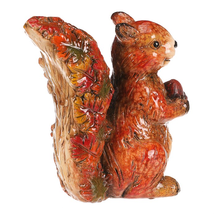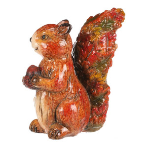 Dotaz na produktFigurka veverky s oříškem z magnesia pokrytá barevnými lístky v červeno-hnědých tónech je originální dekorace, která zaujme na první pohled. Detailní zpracování a přírodní motivy z ní dělají nádherný doplněk pro váš domov nebo zahradu. Perfektní pro doladění podzimní výzdoby s nádechem barevného lesního království.