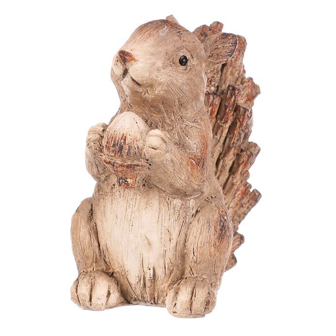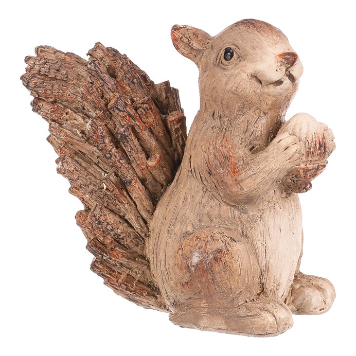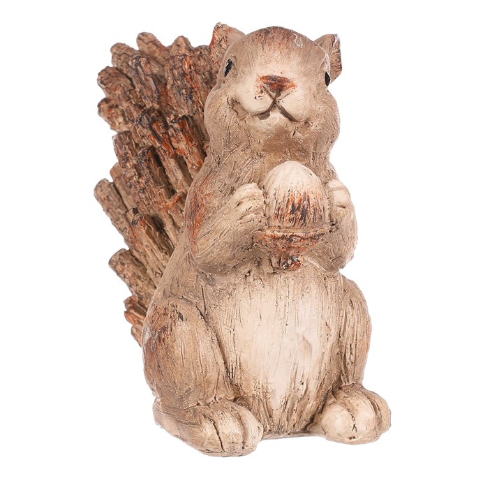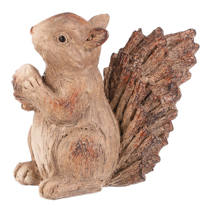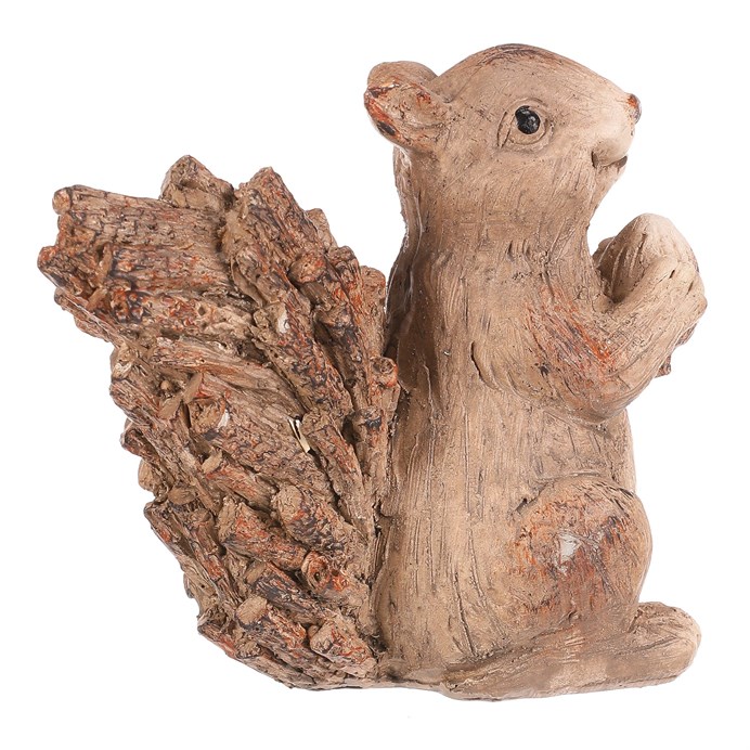Dotaz na produktZahradní figurka v podobě veverky s oříškem krásně zapadne do vnějšího přírodního prostředí, čímž vytvoříte hravě krásné lesní zátiší. Veverka v béžovo-hnědých odstínech je vyrobena z polyresinu, ale vypadá jako by byla celá ze dřeva. Jají ocásek je tvořen jakoby drobnými nasekanými částmi větviček a zbytek těla má charakteristickou dřevěnou texturu.