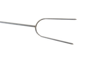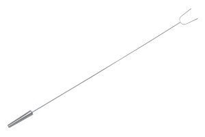 Opékací vilice s elipsovitě tvarovanou rukojetí.
