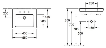 šířka 55 cmhloubka 44 cmvýška 14,5 cmmateriál TitanCerambarva bílá Alpinnástěnnéupevnění na stěnus přepademhmotnost 18,9 kgvhodné pro 3-otvorovou bateriiprostřední otvor pro baterii proraženkryt...