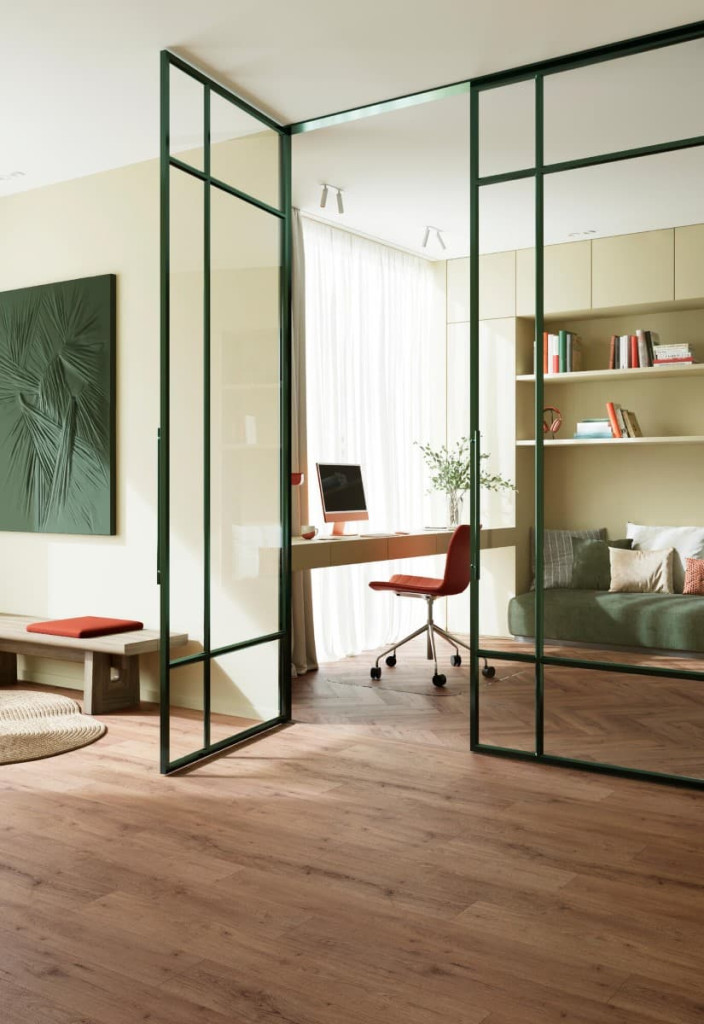 Odolná prkna a dlaždice. Zenn 55 nabízí dvanáct nádherně matných a realistických dekorů: osm prken ve vzhledu dřeva a čtyři dlaždice ve vzhledu kamene.
