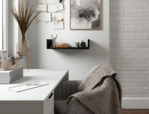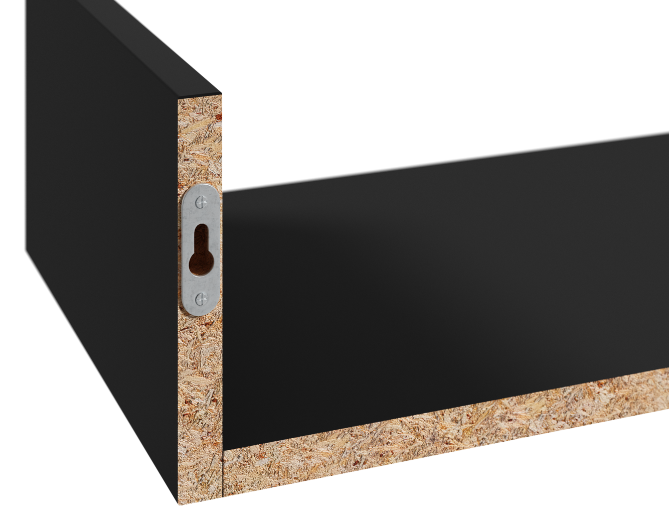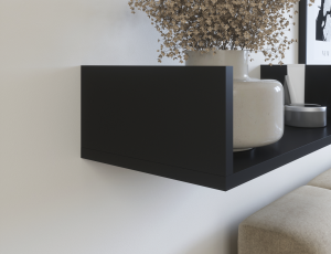 Dotaz na produktNástěnná police Vissta je perfektním řešením pro ty, kteří oceňují moderní, minimalistický design, který se bez problémů hodí do interiérů ve skandinávském stylu. Vissta je všestranný dekorativní prvek, který se perfektně hodí do obývacího pokoje, ložnice nebo kanceláře. Vyznačuje se jednoduchým, ale moderním tvarem, který krásně vystaví vaše oblíbené dekorace, knihy nebo fotografie. Díky minimalistické konstrukci police nezahlcuje interiér, ale decentně jej doplňuje a dodává prostoru elegantní vzhled. Police je vyrobena z vysoce kvalitní 16mm laminované dřevotřísky, což zajišťuje odolnost a trvanlivost při každodenním používání. Přední strana police je zakončena PVC lemováním v barvě, která ladí s dekorem, což jí dodává jednotný a estetický vzhled.Látka: Černá