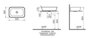 šířka 59,5 cmhloubka 39,5 cmvýška 17 cmbarva matná černá (matt black)materiál sanitární keramikas povrchovou úpravou VitrAhygiene (antibakteriální povrch)bez otvoru pro bateriibez přepaduspodní...
