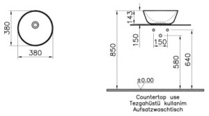 průměr 38 cmvýška 14 cmbarva bílámateriál sanitární keramikas povrchovou úpravou VitrAhygiene (antibakteriální povrch)bez otvoru pro bateriibez přepaduinstalace na deskuPARAMETRY:Výška (mm):...