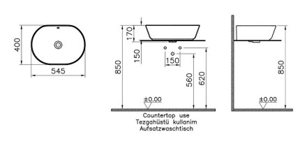 šířka 54,5 cmhloubka 40 cmvýška 17 cmmateriál keramikabarva matná šedá (matte taupe)s povrchovou úpravou VitrAhygiene (antibakteriální povrch)bez otvoru pro bateriibez přepaduspodní strana...