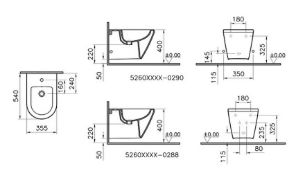 šířka 355 mmhloubka 540 mmvýška 350 mmmateriál sanitární keramikabarva bíláantibakteriální povrch VitrAhygieneinstalace závěsnás 1 otvorem pro bateriis přepademvnitřní přívod vodybaterie není...