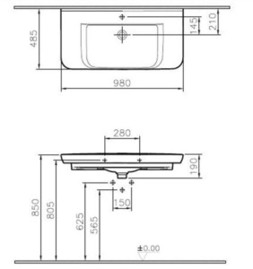 šířka 98 cmhloubka 48,5 cmvýška 19 cmmateriál keramikabarva bílás povrchovou úpravou VitrAhygiene (antibakteriální povrch)instalace zavěšením na stěnus otvorem pro baterii uprostředs přepademlze také...