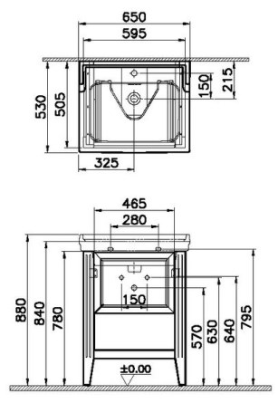 VITRA VALARTE skříňka s umyvadlem 65x53x88 cm, 1 zásuvka, 1 police, matná bílá