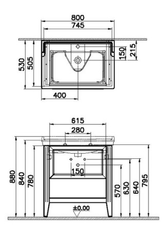 VITRA VALARTE skříňka s umyvadlem 80x53x88 cm, 1 zásuvka, 1 police, matná bílá