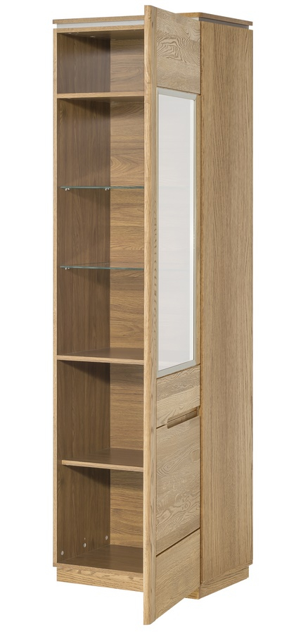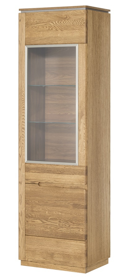 Dotaz na produkt Na splátky ještě dnesVitrína jednodveřová pravá prosklená. Jednoduché linie a kvalitní zpracování ve spojení s nadčasovým designem této řady dodají vaší jídelně nebo obývacímu pokoji jedinečný vzhled. Povrch vnějších částí je ošetřen olejem. Korpus je z vnější strany doplněn přírodní dubovou dýhou, vnitřní strana je z desky LTD v barvě přírodního dřeva. Dvířka jsou vyrobeny z masivního dubu rustikal, sklo je tvrzené v ocelovém rámu. Úchyty jsou vyfrézované do přední desky. Možno dokoupit LED osvětlení. Dodáváme již ve smontovaném stavu.