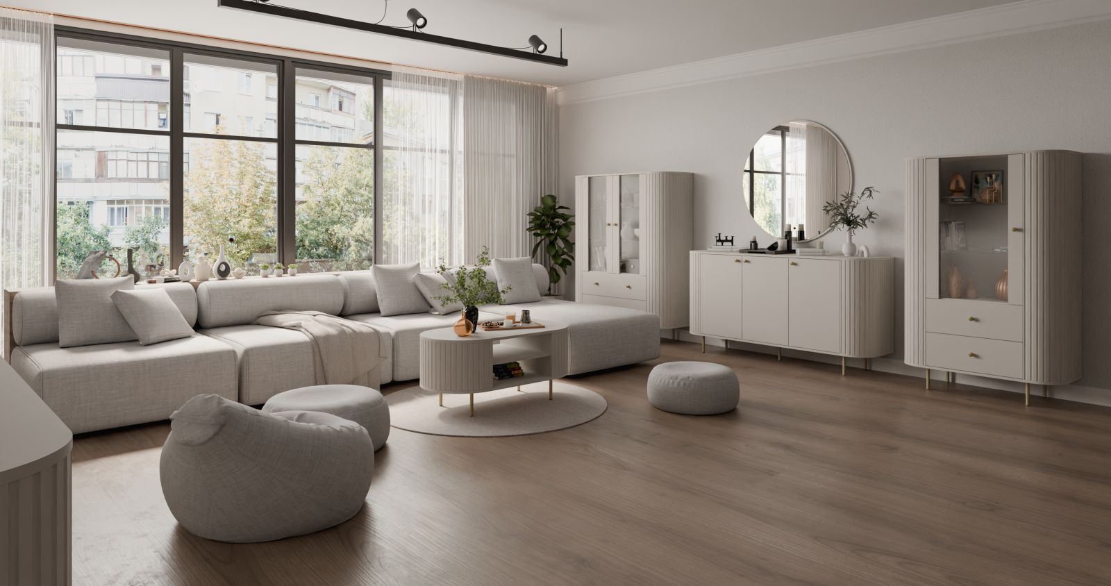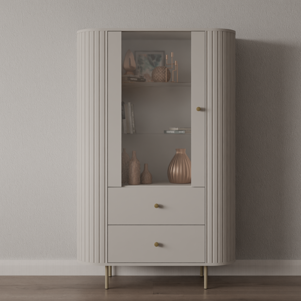 Dotaz na produkt Na splátky ještě dnesObjevte kolekci nábytku Orvelo, která představuje minimalismus ozvláštněný precizními frézovanými detaily a vnáší do interiéru zcela nový rozměr elegance. Barevné provedení v jemných zemitých odstínech tvoří harmonický základ, černé a zlaté akcenty dodají lehkost a moderní charakter. Kolekce byla navržena tak, aby každý prvek – od vitrín a komod až po konferenční stolky a TV skříňky – mohl být použit samostatně a zároveň ladil jako celek.