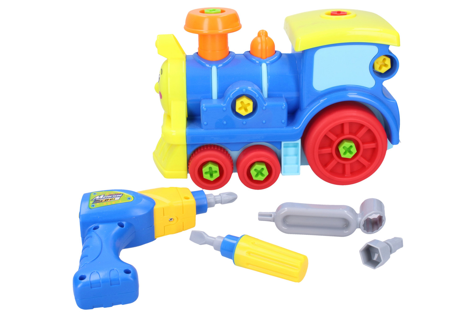 Dotaz na produktŠroubovací vlak. Balení obsahuje vláček, šroubovák, vrtačku, klíč, násady a šroubky. Šroubovák je elektrický, 2xAA baterie nejsou součástí.