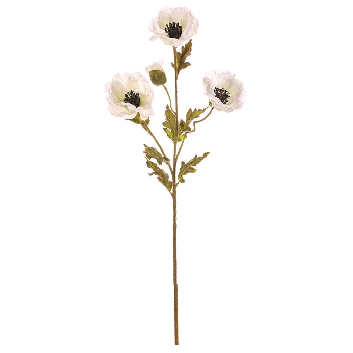Dotaz na produktUmělý řezaný vlčí mák v bílé barvě nabízí věrnou imitaci rostliny s třemi otevřenými květy a jedním poupětem. Textilní květy jsou doplněny zelenými listy s jemnou strukturou, která přispívá k realistickému vzhledu. Díky své výšce a detailnímu zpracování je vhodný pro aranžmá v interiéru i jako dekorativní prvek v květinových vazbách. Nevyžaduje údržbu a dlouhodobě si zachovává svůj tvar i barvu.