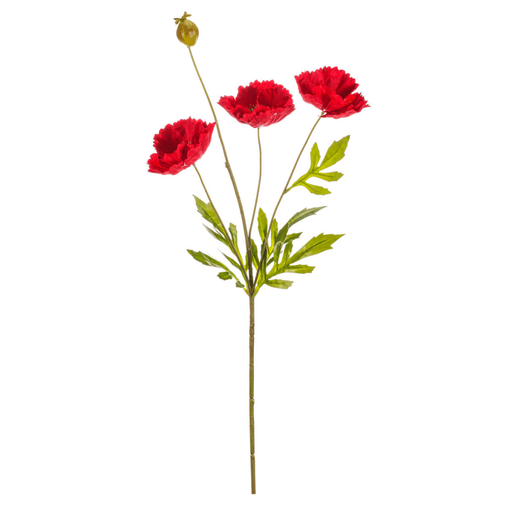 Dotaz na produktUmělý řezaný vlčí mák v červené barvě přináší do interiéru živý barevný akcent s květy doplněnými makovicí. Květiny jsou vyrobeny z textilu, který věrně napodobuje přirozenou strukturu a tvar okvětních lístků i listů. Díky pečlivému zpracování stonků a listů působí dekorace přirozeně a je vhodná pro aranžmá v květinových vazbách i samostatně. Červené odstíny květů oživí každý prostor a dodají mu svěží atmosféru.