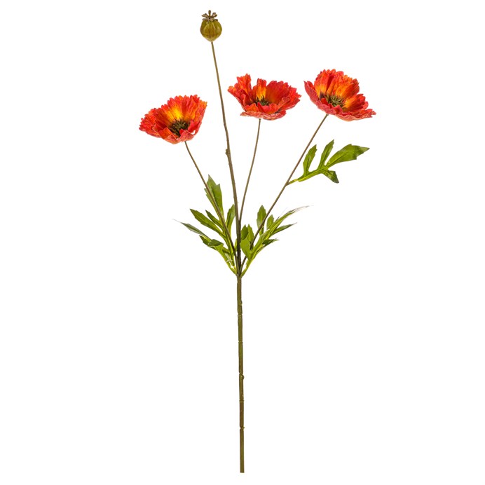 Dotaz na produktUmělý řezaný vlčí mák v oranžových odstínech přináší do interiéru živý vizuální efekt s květy doplněnými makovicemi. Textilní materiál věrně napodobuje přirozenou strukturu okvětních lístků i listů, které jsou uspořádány na tenkých stoncích s přirozenou křivkou. Díky svému provedení je vhodný pro aranžmá v květinových vazbách, dekorativních nádobách nebo jako samostatný doplněk. Oranžová barva květů oživí každý prostor a dodá mu příjemnou atmosféru.