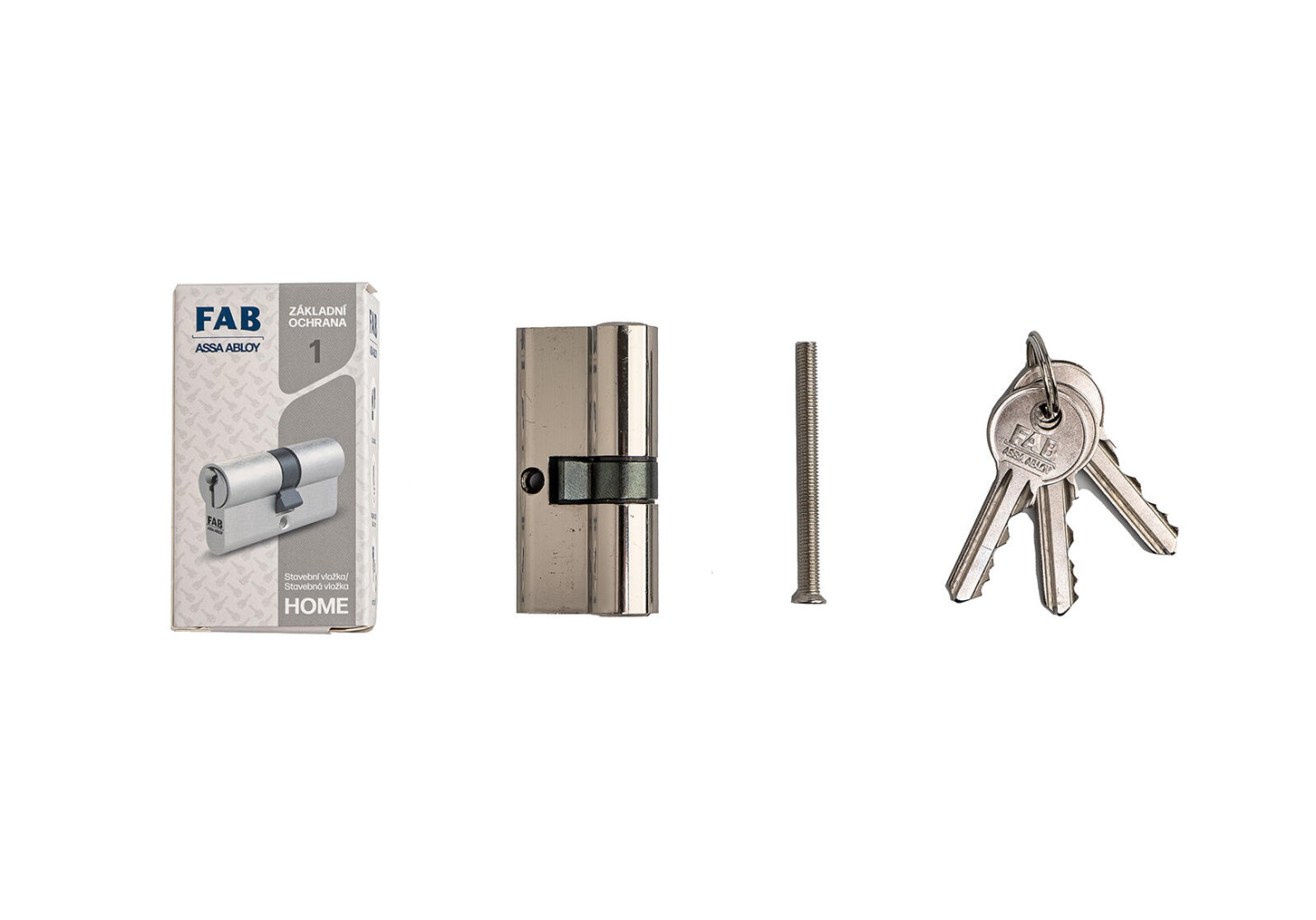 Stavební cylindrická vložak FAB 1 HOME je určená pro dveře vyžadující pouze dočasné uzamčení po dobu stavby, základní úroveň zabezpečení.