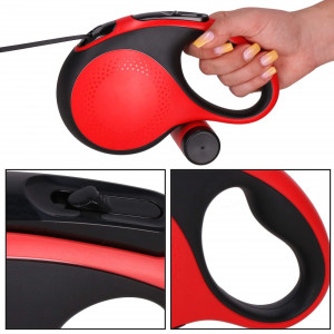 Lehké a pevné vodítko se zásobníkem na sáčky a s ergonomickou rukojetí zajišťuje pohodlné držení. Samonavíjecí mechanismus s brzdou a zámkem umožňuje snadnou kontrolu nad pohybem psa. Odolný materiál a otočná karabina 360° poskytují bezpečnost i volnost. Ideální pro venčení v parku, procházky v lese i na frekventovaných místech.