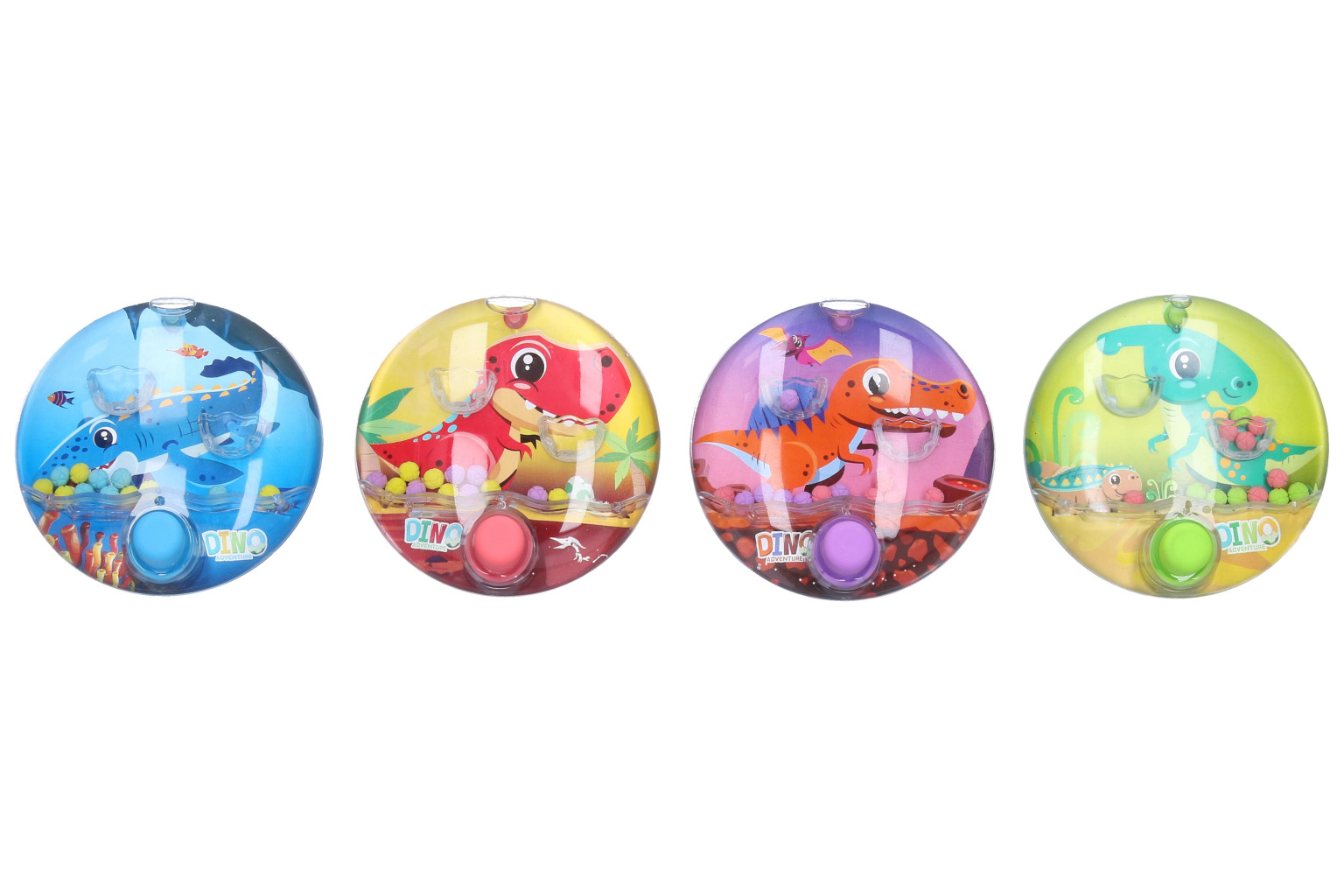 Dotaz na produktVodní hra dinosaurus. Rozměry 10x10x3 cm. 12 ks display box. 4 varianty - oranžová, červená, modrá, zelená.