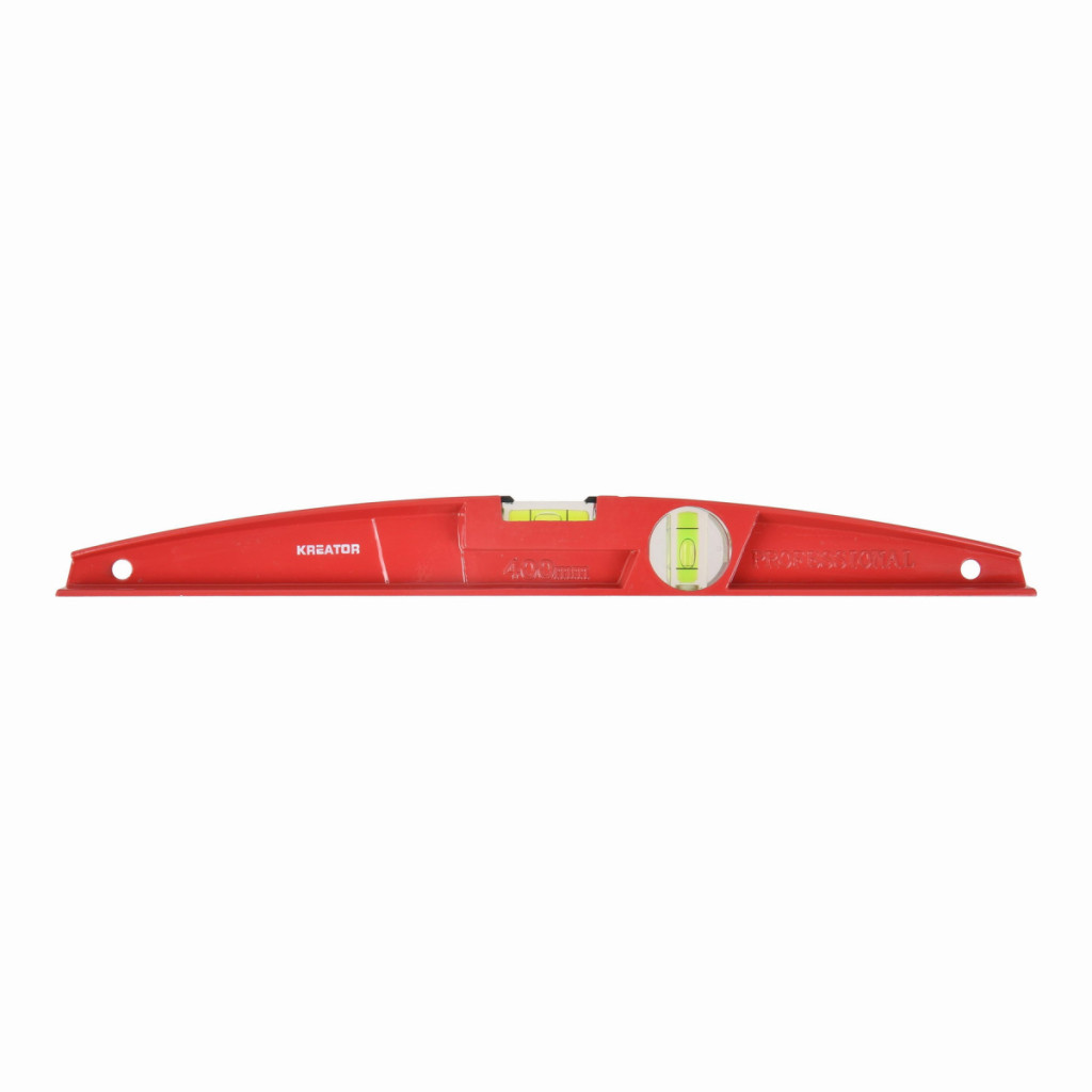 Dotaz na produktTato robustní, ale lehká vodováha KRTH70901 z naší řady Kreator o délce 40 cm může být použita horizontálně i vertikálně. Odolný hliníkový rám má ohnutý profil pro pevný úchop. Navíc má integrované závěsné oko pro snadné skladování.