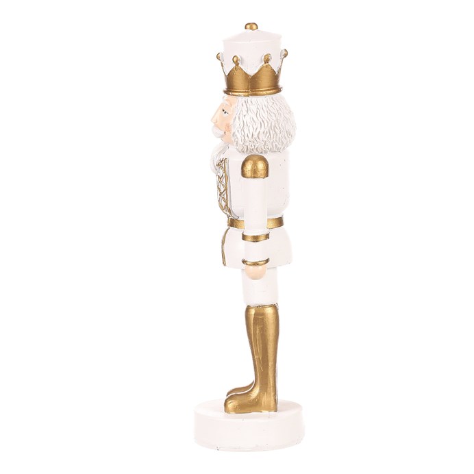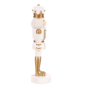 Dotaz na produktFigurka vojáka ve své bílo-zlaté uniformě, určena na postavení, vám přinese do domova neotřelou vánoční atmosféru plnou elegance a šarmu. Jeho půvabná postava stojící v pozoru na kulatém stupínku okouzlí každého pozorovatele a dodá vašemu prostoru jedinečný a nadčasový vzhled. Zlaté detaily, jako jsou boty, knoflíky a spodní část klobouku, nejenže podtrhují jeho noblesu, ale také dodávají této figurce zvláštní punc, kterým zaujme a obohatí váš vánoční interiér. Buďte nápadití a prokažte své originální myšlenky v praxi a nechte vystavit obdivu tuto nádhernou figurku vojáka, která upoutá zraky všech návštěvníků.