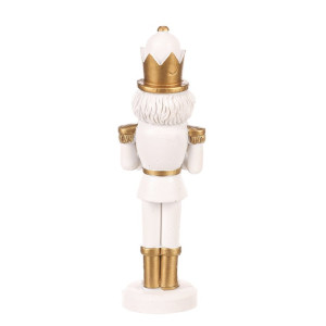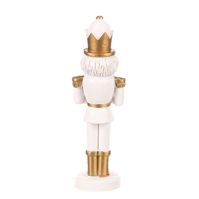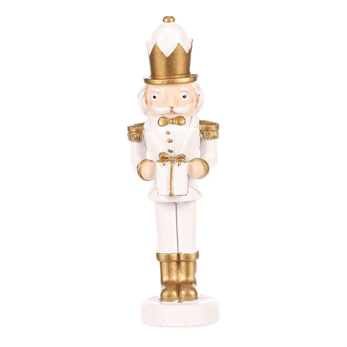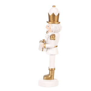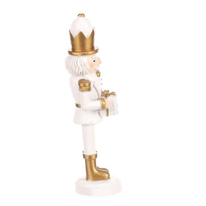 Dotaz na produktFigurka vojáka ve své bílo-zlaté uniformě, určena na postavení, vám přinese do domova neotřelou vánoční atmosféru plnou elegance a šarmu. Jeho půvabná postava držící dáreček a stojící v pozoru na kulatém stupínku okouzlí každého pozorovatele a dodá vašemu prostoru jedinečný a nadčasový vzhled. Zlaté detaily, jako jsou boty, knoflíky a spodní část klobouku, nejenže podtrhují jeho noblesu, ale také dodávají této figurce zvláštní punc, kterým zaujme a obohatí váš vánoční interiér. Buďte nápadití a prokažte své originální myšlenky v praxi a nechte vystavit obdivu tuto nádhernou figurku vojáka, která upoutá zraky všech návštěvníků.