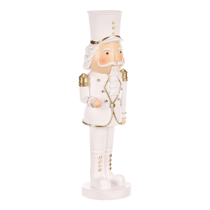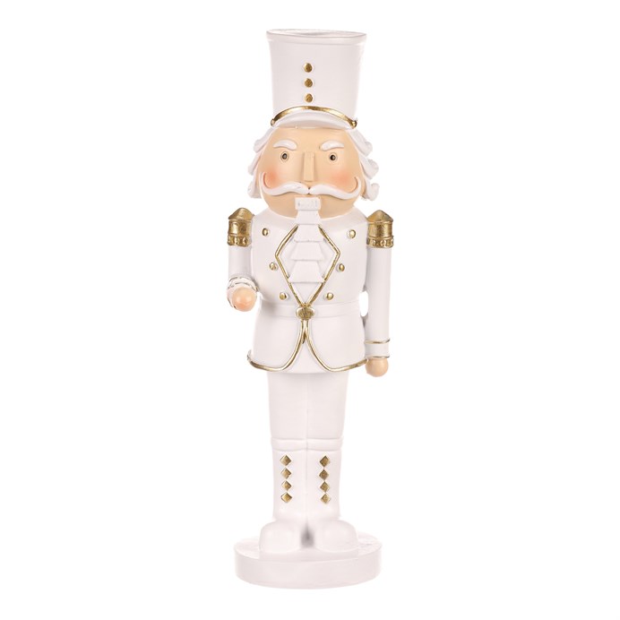 Dotaz na produktPřineste do svého vánočního interiéru dávku elegance s naším vojákem v bílé uniformě velikosti „L“. Tato půvabná figurka, vyrobena z polyresinu, zaujme svou bílo-zlatou kombinací barev a detaily své slušivé uniformy. Ta je zdobená zlatými knoflíky a dalšími doplňky, přinášející do vašeho domova luxusní nádech. Bílé vousy a vlasy dodávají postavě nadčasový a noblesní vzhled. Tato soška na postavení je originální a netradiční vánoční dekorací, která okouzlí všechny ostatní svou exkluzivitou. Umístěte ji na poličku, stůl nebo na jiné vhodné místo a přidejte do své vánoční výzdoby prvek elegance a noblesy.