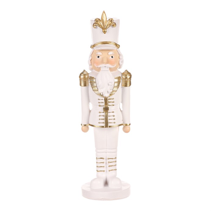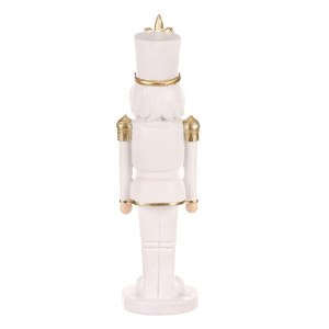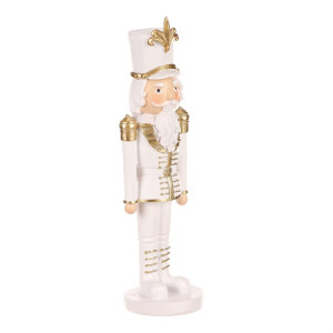 Dotaz na produktPřineste do svého vánočního interiéru dávku elegance s naším vojákem v bílé uniformě velikosti „M“. Tato půvabná figurka, vyrobena z polyresinu, zaujme svou bílo-zlatou kombinací barev a detaily své slušivé uniformy. Ta je zdobená zlatými knoflíky a dalšími doplňky, přinášející do vašeho domova luxusní nádech. Bílé vousy a vlasy dodávají postavě nadčasový a noblesní vzhled. Tato soška na postavení je originální a netradiční vánoční dekorací, která okouzlí všechny ostatní svou exkluzivitou. Umístěte ji na poličku, stůl nebo na jiné vhodné místo a přidejte do své vánoční výzdoby prvek elegance a noblesy.